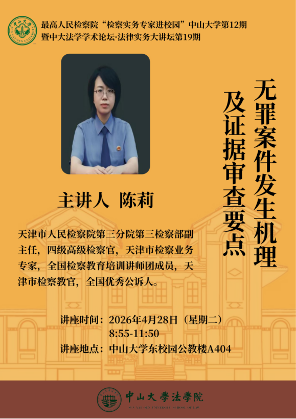 最高人民检察院“检察实务专家进校园”欧美av (第12期)、中大法学学术论坛·法律实务大讲坛(第19期):无罪案件发生机理及证据审查要点